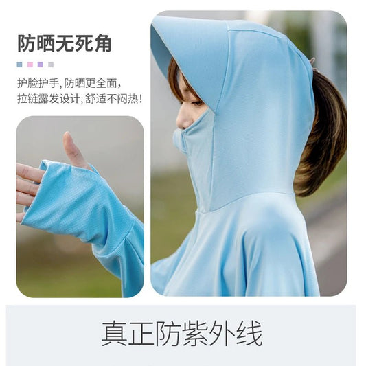 Summer Women Sun Protection Clothing UPF 50+ UV Ice Silk Sunscreen Clothing Hooded Sun Protection Clothing Outdoor UV Protection